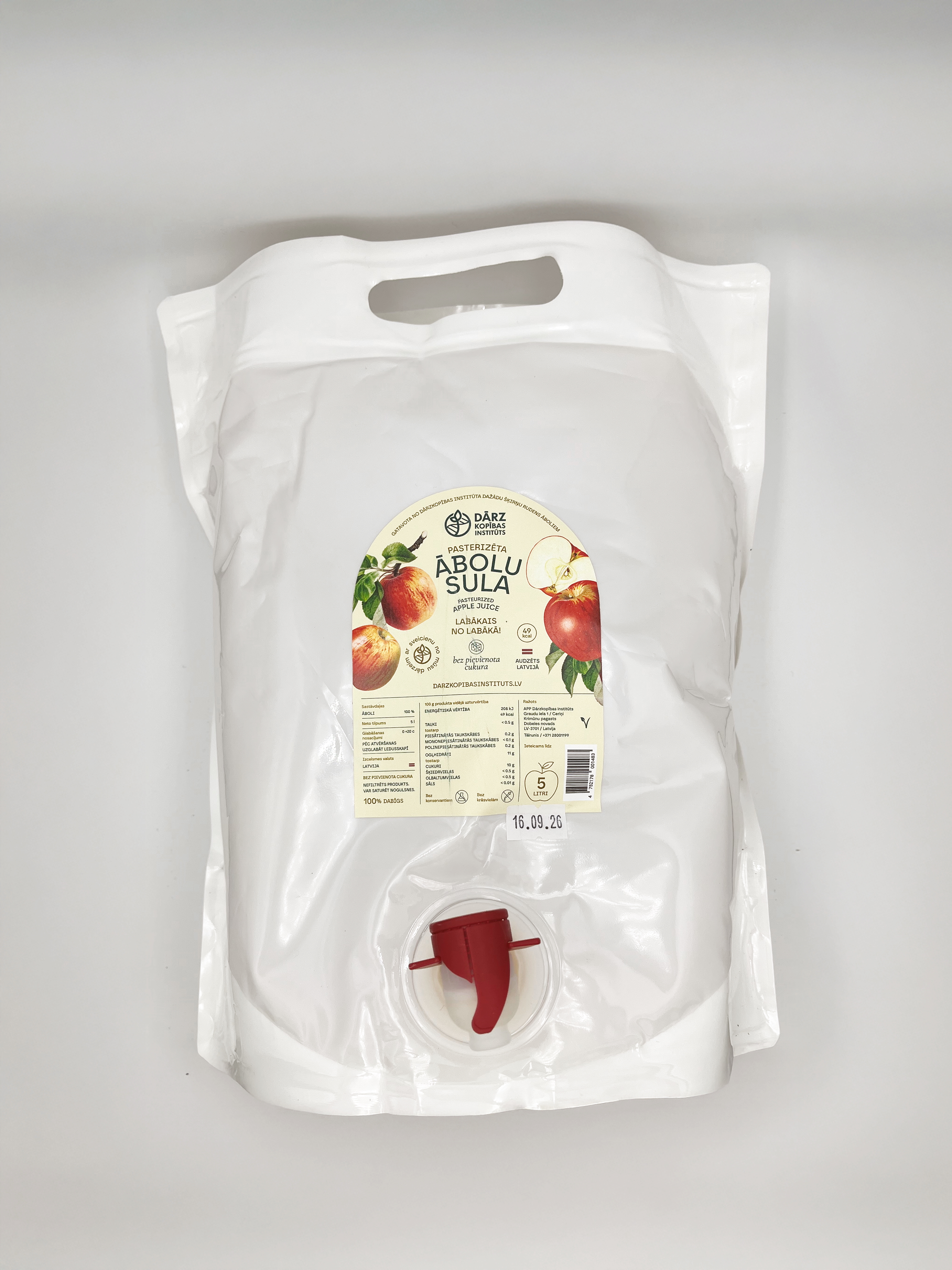 Ābolu sula 5L Pasterizēta ābolu sula no Dārzkopības institūta dažādu šķirņu rudens āboliem. 6,90 € Tilpums 5 L