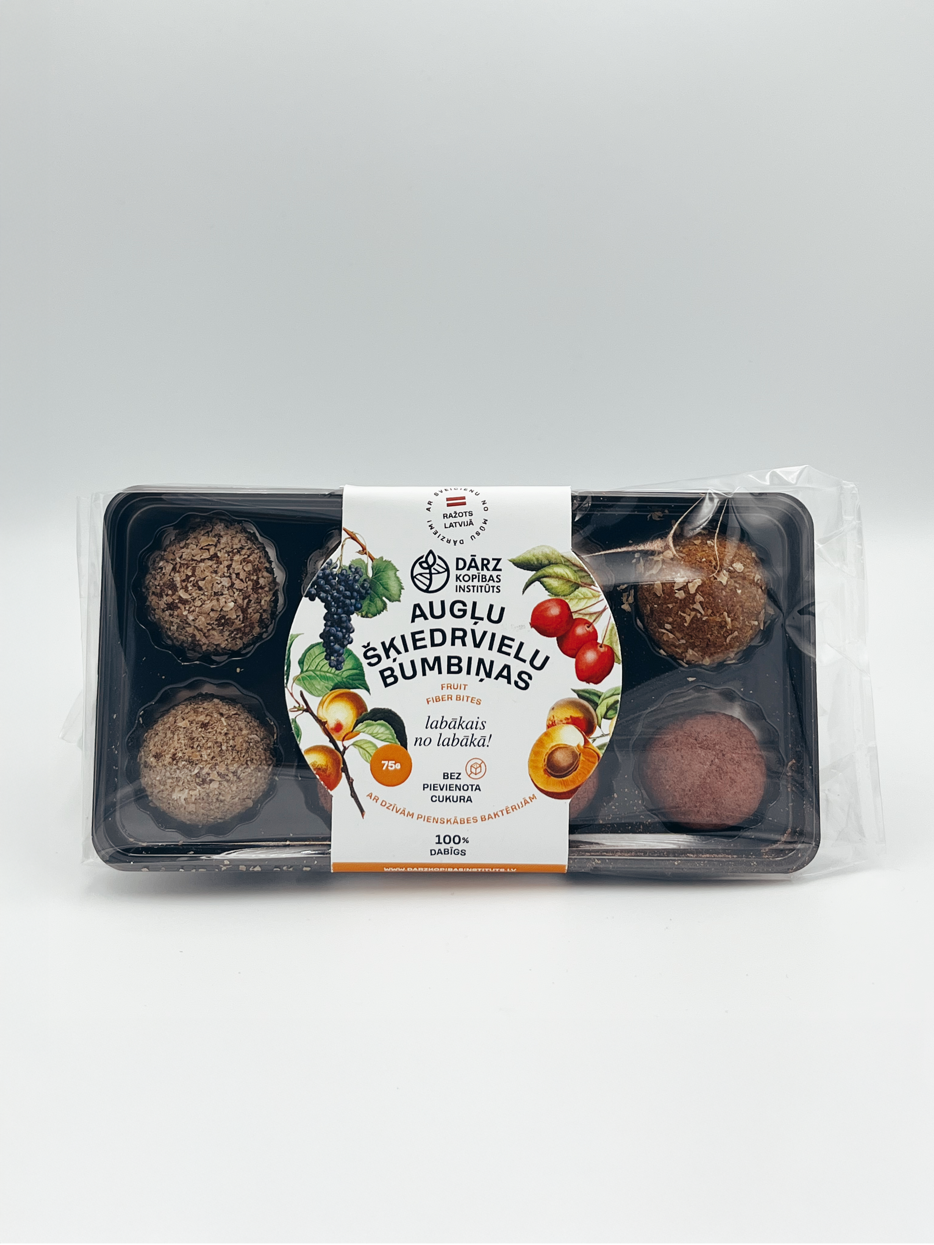 Ir Dārzkopības institūtā zinātnieku izstrādātas konfektes ar augstu šķiedrvielu saturu, bioloģiski aktīvām vielām un dzīvām pienskābām baktērijām Lacticaseibacillus rhamnosus. Bez konservantiem, krāsvielām un pievienota cukura. DAUDZ ŠĶIEDRVIELU!