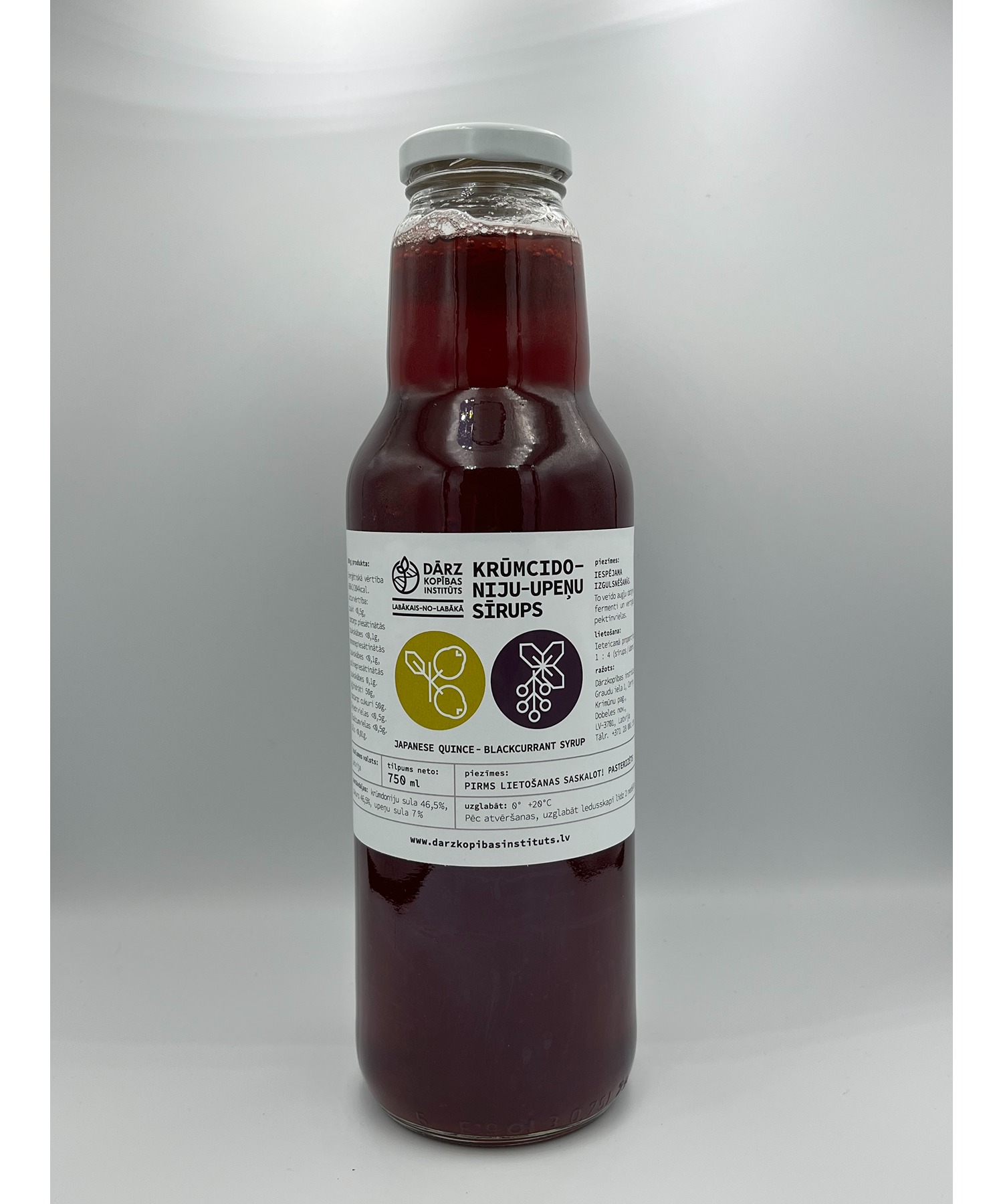 Sīrups no Latvijā audzētām krūmcidonijām un upenēm. Sīrups, kas apvieno sevī raksturīgo krūmcidoniju skābumu un izteiktu upeņu aromātu. Pasterizēts. Bez mākslīgām piedevām. Bez konservantiem. Dabīga izejviela gatavojot dzērienus, saldos ēdienus, želejas, kā arī jauka piedeva kūku krēmu pagatavošanai.