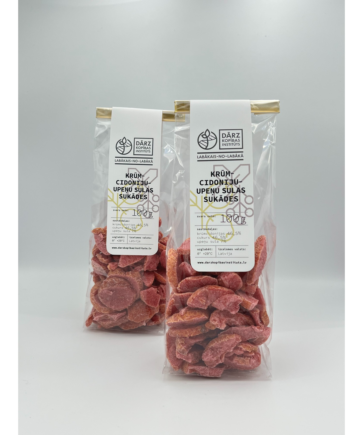 Vitamīniem un šķiedrvielām bagātas krūmcidoniju sukādes, piesātinātas ar dabīgo upeņu sulu, kas piešķir sukādēm interesantu rozā krāsu un patīkamu garšas niansi. Satur cukuru. Dabīgs kārums saldumu mīļotājiem.